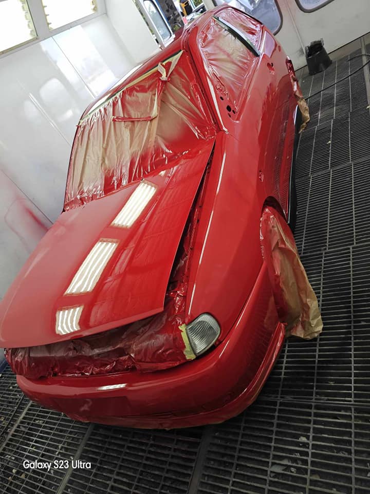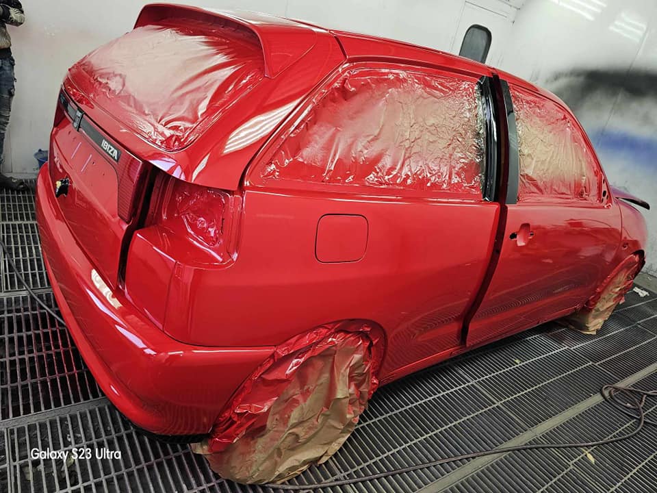 Une remise à neuf intégrale pour cette Seat Ibiza. Le projet a nécessité une préparation minutieuse en cabine pour éliminer les défauts du temps. L'utilisation de notre rouge haute brillance redonne à ce véhicule son allure sportive originale, avec une résistance accrue aux agressions extérieures.