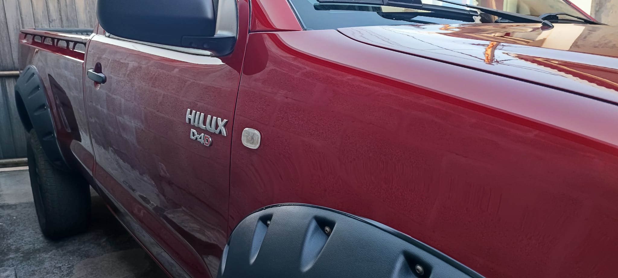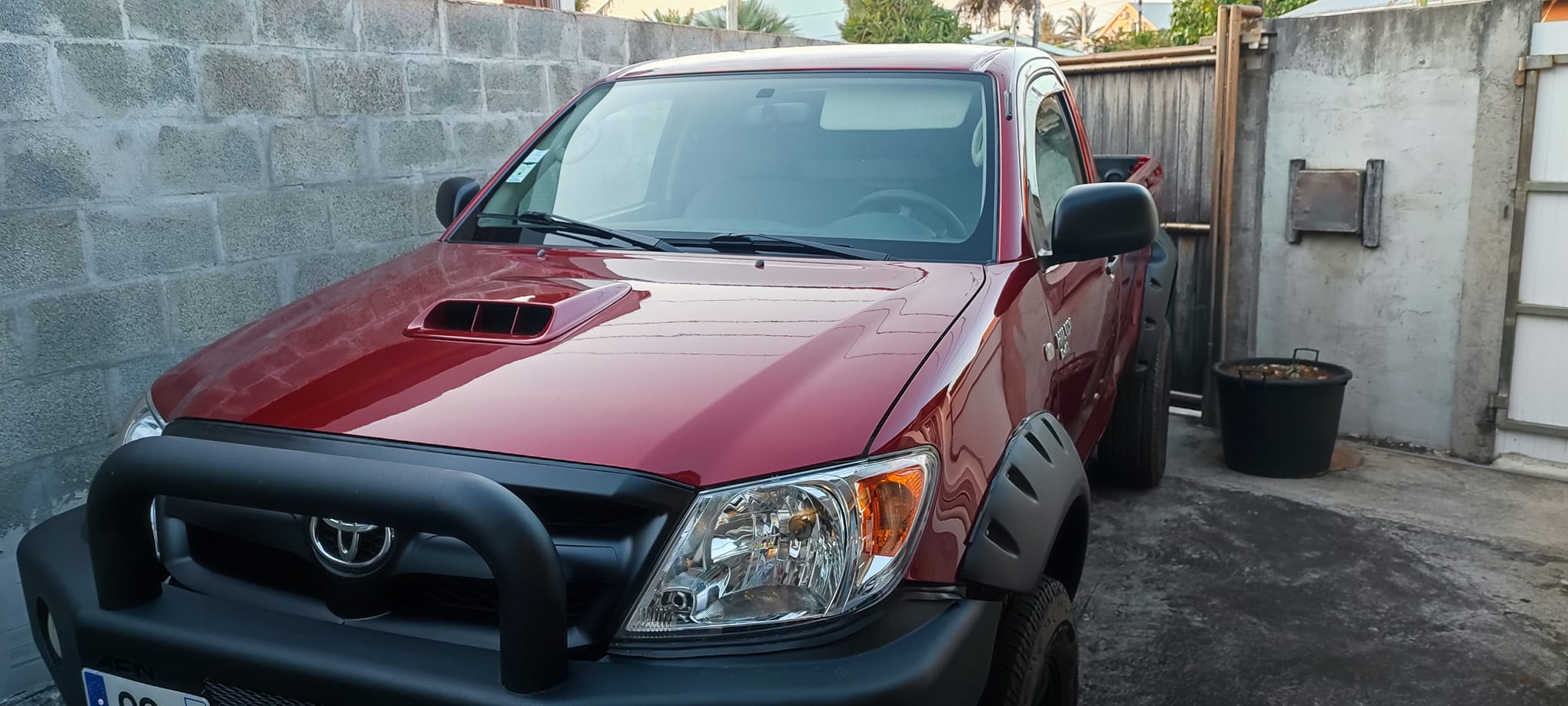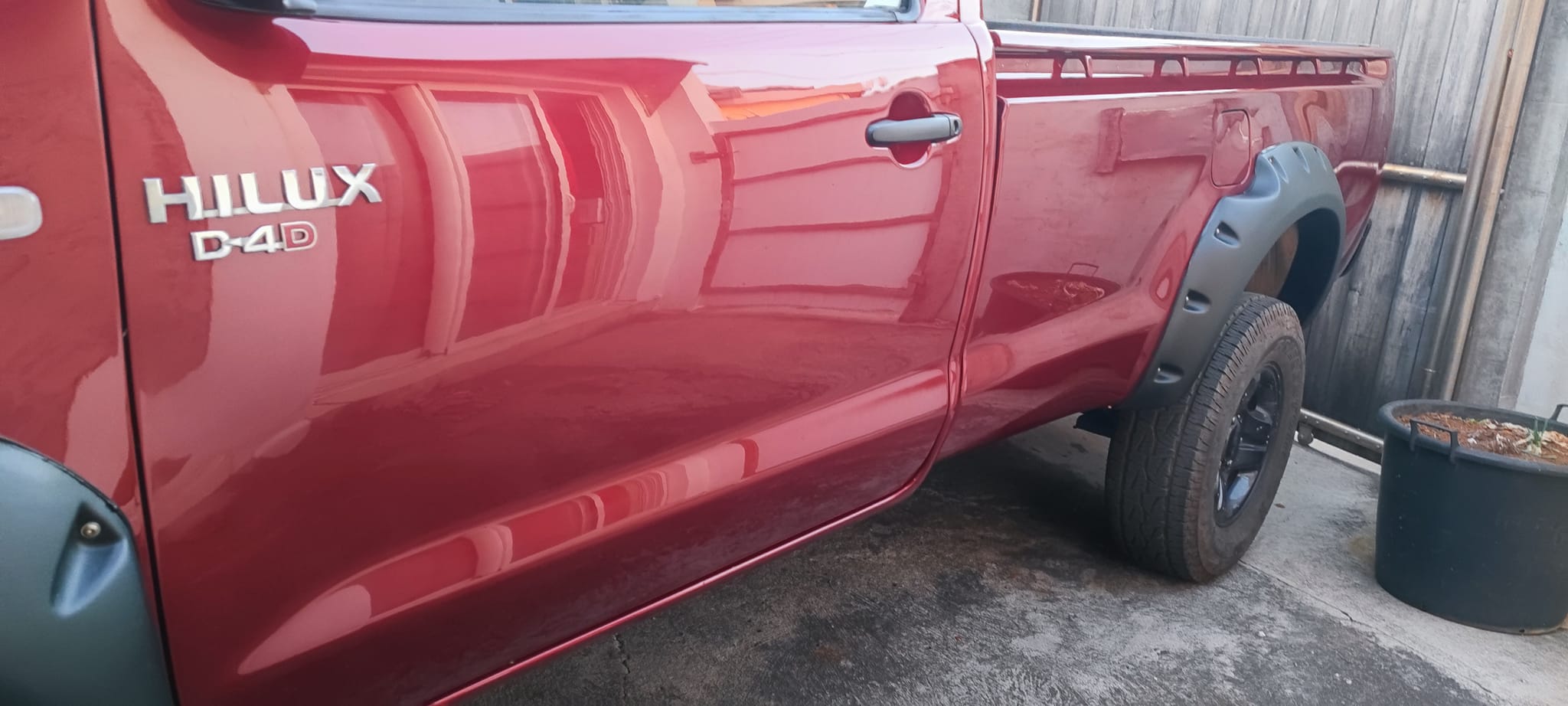 Une restauration complète visant à redonner toute sa profondeur au rouge iconique de cet Hilux. Utilisation d'une peinture Brillant Direct Haute Performance pour un tendu de film parfait et un éclat miroir durable. Ce projet démontre l'efficacité de nos gammes classiques pour une finition robuste, capable de braver les pistes comme la ville.